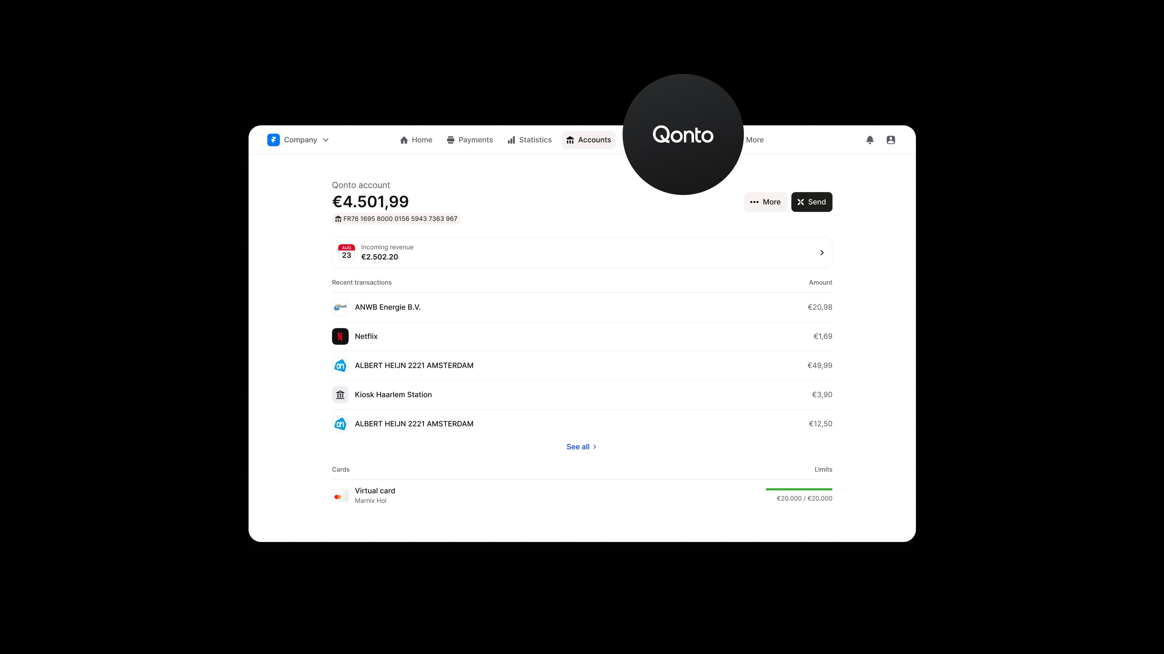 Durch die Kombination der Zahlungen von Mollie mit den Bankservices von Qonto profitieren Sie von: