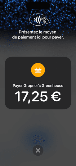 3. Votre client.e tient sa carte horizontalement, pendant quelques secondes, au-dessus du symbole sans contact qui s’affiche sur la partie supérieure de votre iPhone.