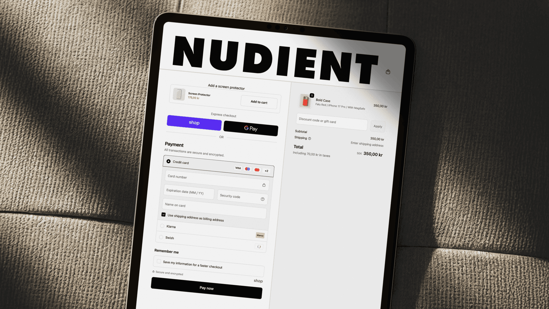 En på riktigt lokal checkout som konverterar: Med en enda integration kan NUDIENT nu erbjuda de lokala betalmetoder kunderna litar på – från Klarna till MobilePay. Det ökar tryggheten och har bidragit till en betydande ökning av konverteringen med 6 %.
